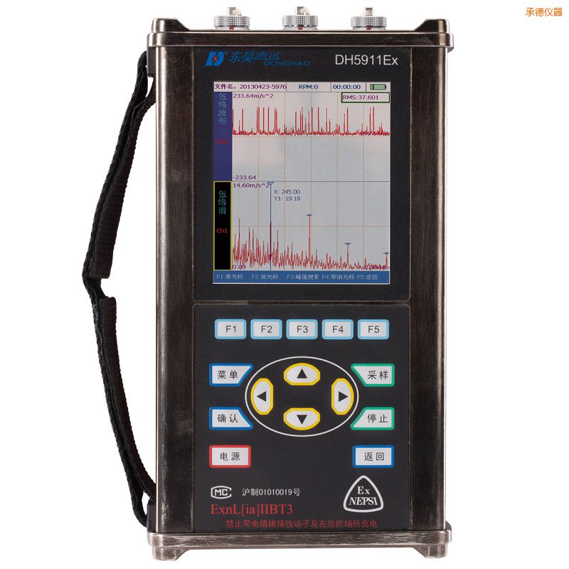 點(diǎn)巡檢系列之一:高性能、雙通道、精密巡檢與診斷分析概述 DH5911EX是針對(duì)企業(yè)故障診斷專業(yè)工程師進(jìn)行故障診斷而設(shè)計(jì)的一款專用精密診斷儀,雙通道、高性能,,不僅具有巡檢儀的功能,而且具有精密故障診斷儀功能,可現(xiàn)場(chǎng)進(jìn)行一系列復(fù)雜的故障診斷和信號(hào)分析工作。DH5911Ex還可用于防爆環(huán)境下的診斷測(cè)試。