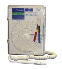 DeltaTrak的溫度/濕度/露點(diǎn)圓圖記錄儀, 型號(hào)14013(110V)和14014(220V), 提供溫度和相對(duì)濕度同步監(jiān)測(cè)。它有四個(gè)不同的圖表速度:12小時(shí)、24小時(shí)、7天及31天。圖表有oF或oC兩種。記錄范圍為-30℃?50°C,相對(duì)濕 度10%~90%。該記錄儀也可計(jì)算露點(diǎn)。有一個(gè)易閱讀的液晶顯示屏和全功能的溫度超范圍警報(bào)特點(diǎn)。